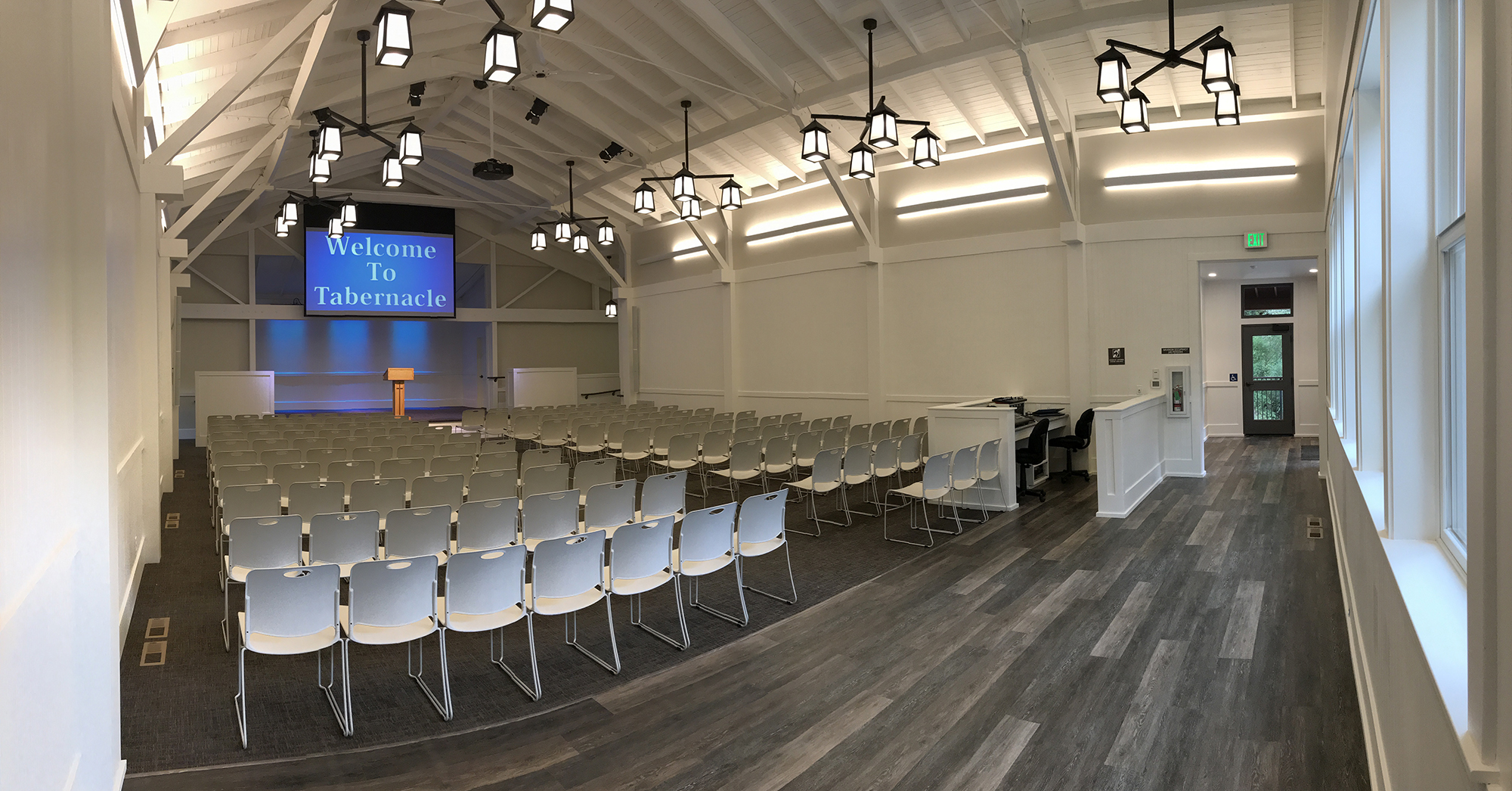 Be Embraced in a rich piece of Mission Springs history. The tabernacle was the first permanent indoor meeting space dedicated in 1930. Don’t worry, the TAB has undergone a very recent remodel and is a beautiful indoor venue with modern touches. The space is equipped with chairs, projector, soundboard, stage, and restrooms nearby.